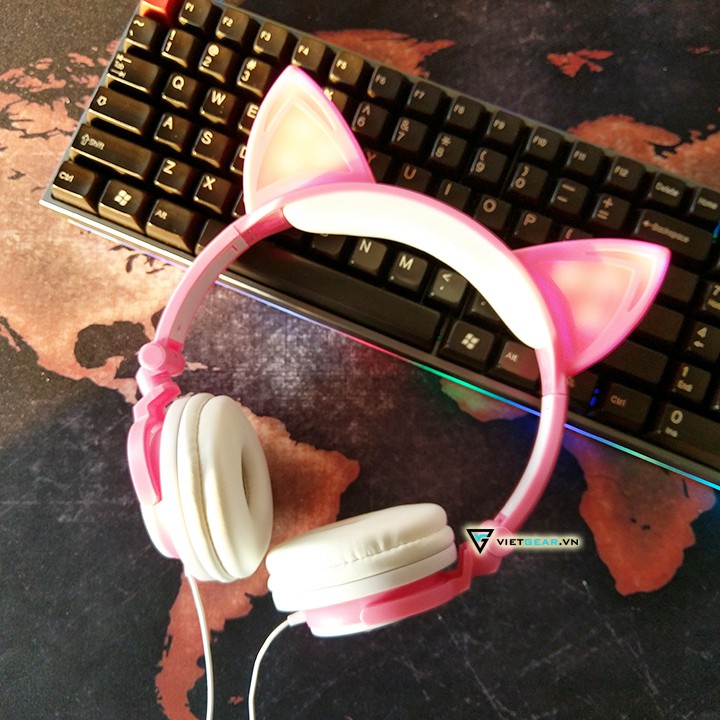 chỉ còn 157,500đ [Freeship toàn quốc từ 50k] Tai nghe tai mèo Classic màu hồng trắng có đèn led siêu cute